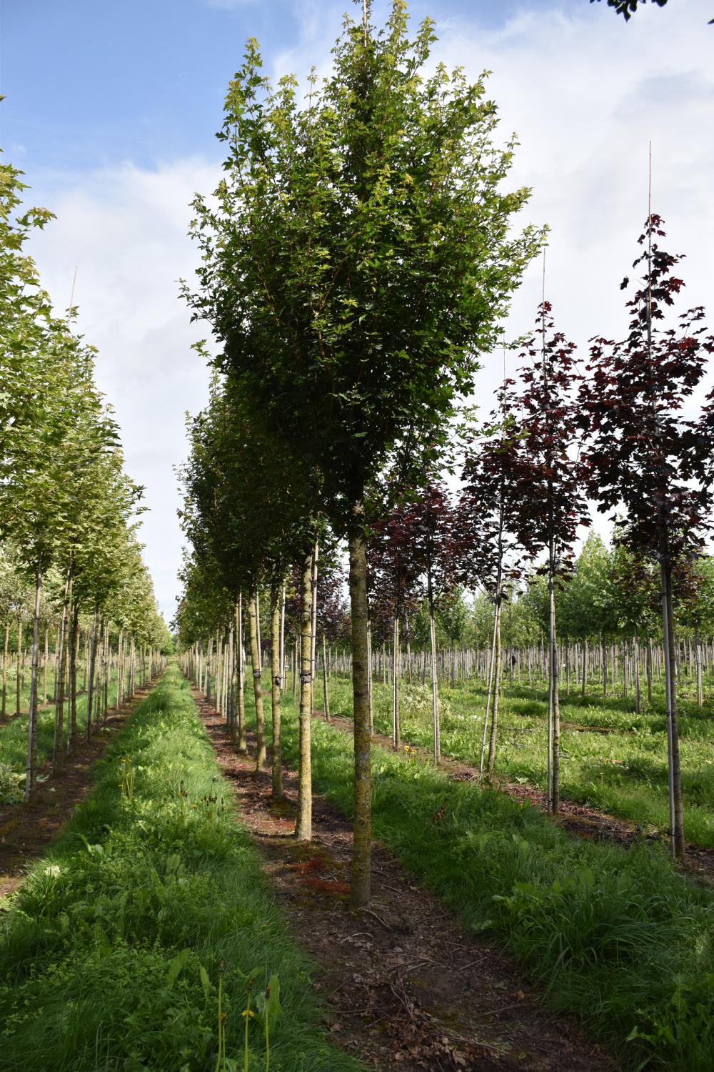 Acer campestre ‘Huibers Elegant’ is een selectie van de inheemse veldesdoorn (Acer campestre), speciaal gekweekt vanwege zijn slanke, opgaande groei en rustige kroonstructuur. Deze cultivar is veredeld in Nederland en past uitstekend in smalle lanen, woonwijken en projectbeplanting waar een compacte kroon gewenst is.