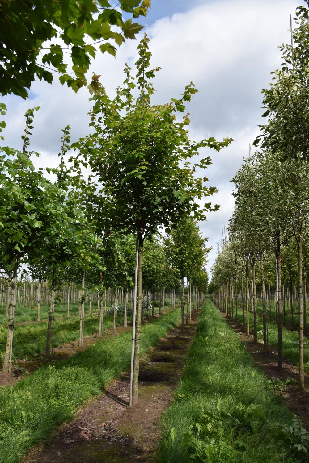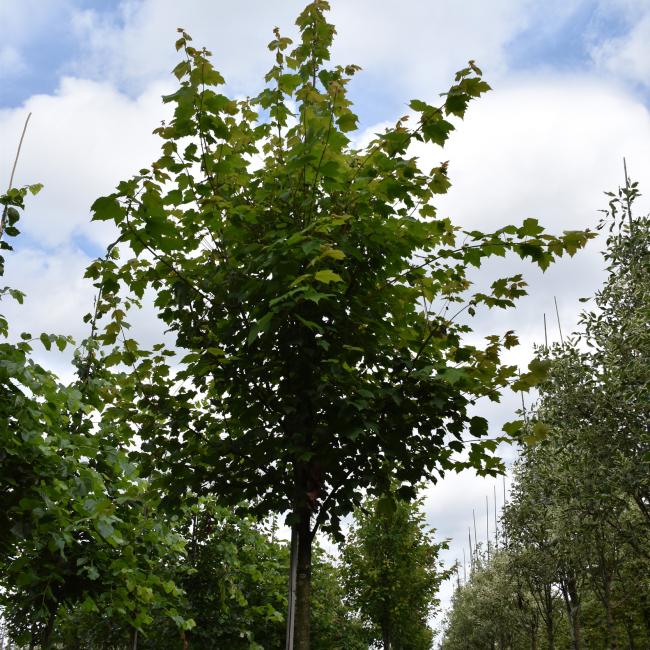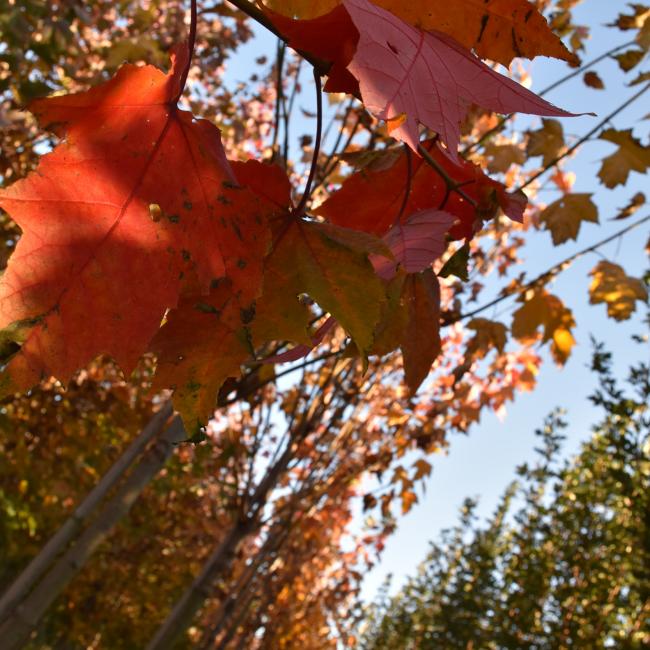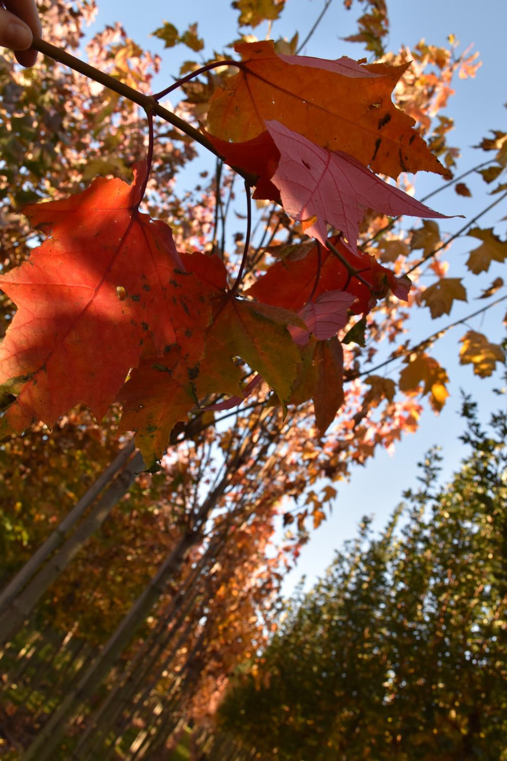 Blätterbeschreibung Grote, 3–5-lobbige bladeren, glanzend groen in zomer, intens rood in herfst.