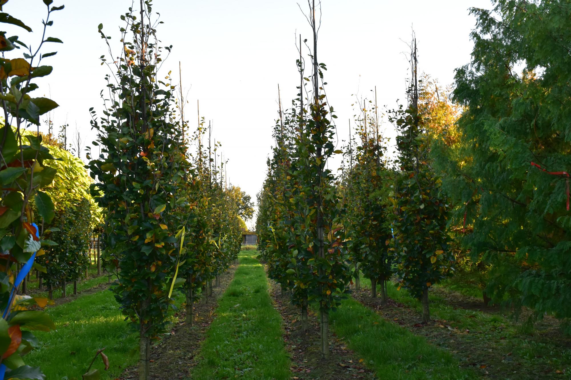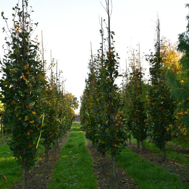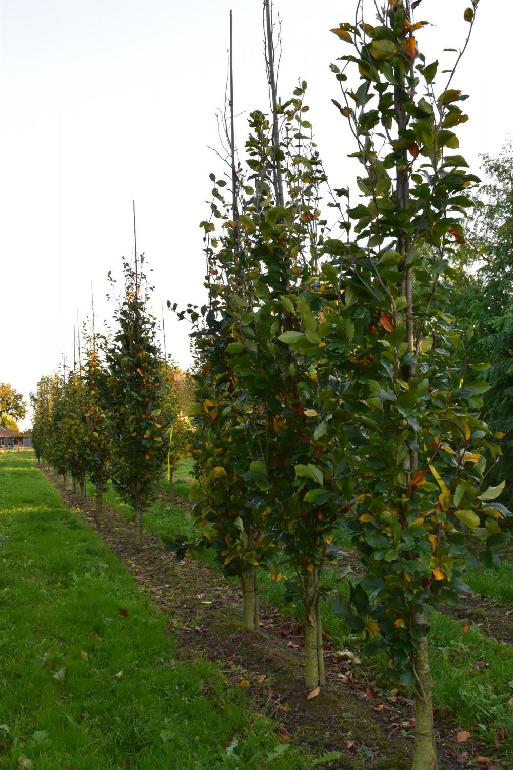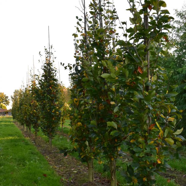 Fagus orientalis ‘Iskander’ is een bijzondere selectie van de Oosterse beuk met een slanke, smal opgaande zuilvorm. Deze boom groeit recht en compact, waardoor hij ideaal is voor lanen, pleinen en stedelijke aanplant waar weinig ruimte in de breedte is. Het blad is glanzend donkergroen, lijkt op dat van de gewone beuk, en verkleurt in de herfst naar warm geelbruin. Een duurzame en sierlijke boom met een krachtige uitstraling.