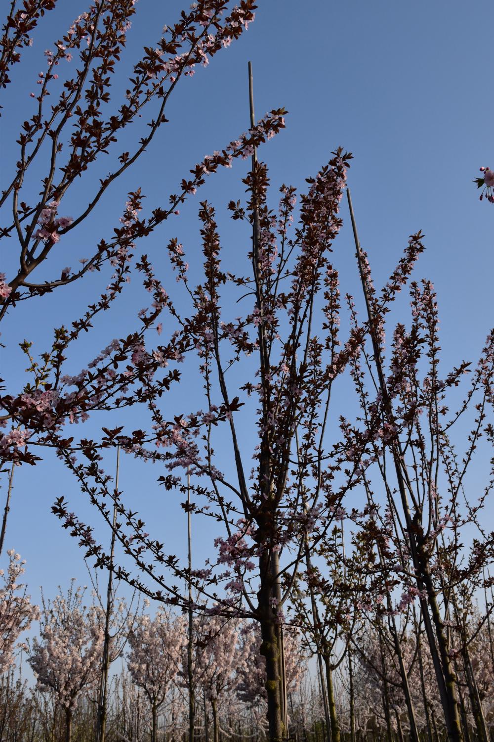 Een middelgrote sierboom met donker purperrood blad en een rijke bloei van zachtroze tot lichtroze bloemen in het vroege voorjaar. Geeft kleur in alle seizoenen en is zeer geschikt voor tuinen, straten en parken. Compacte groei, onderhoudsvriendelijk en een sterke blikvanger.