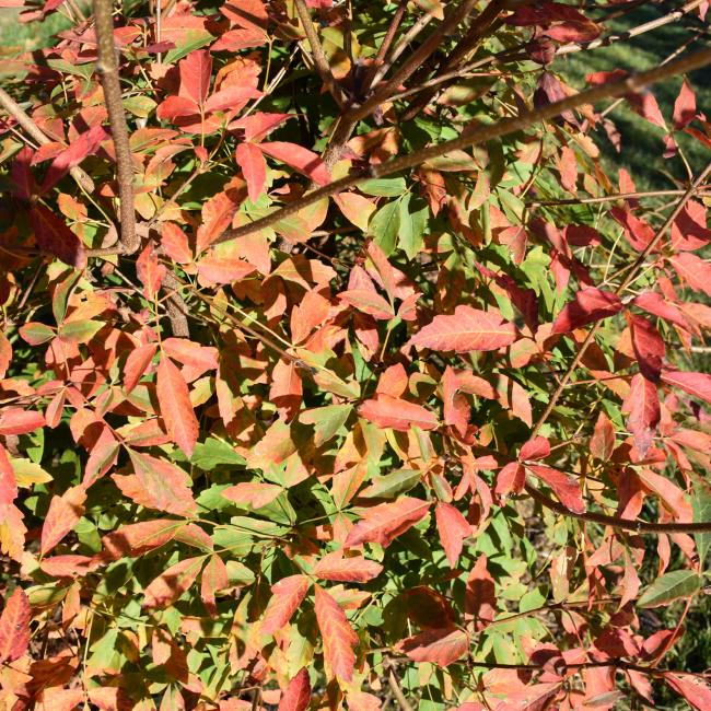 Bladeren omschrijving Klein, samengesteld drietallig blad; zachtgroen in zomer, intens herfstkleurend.