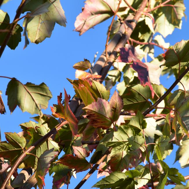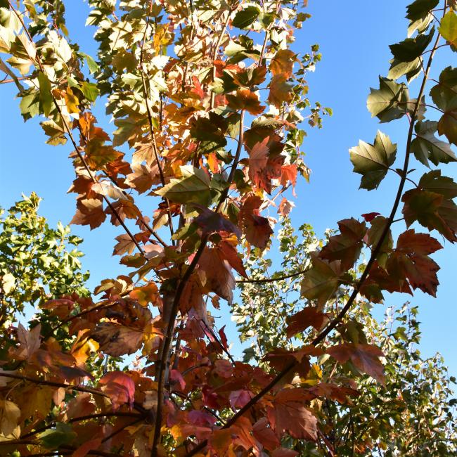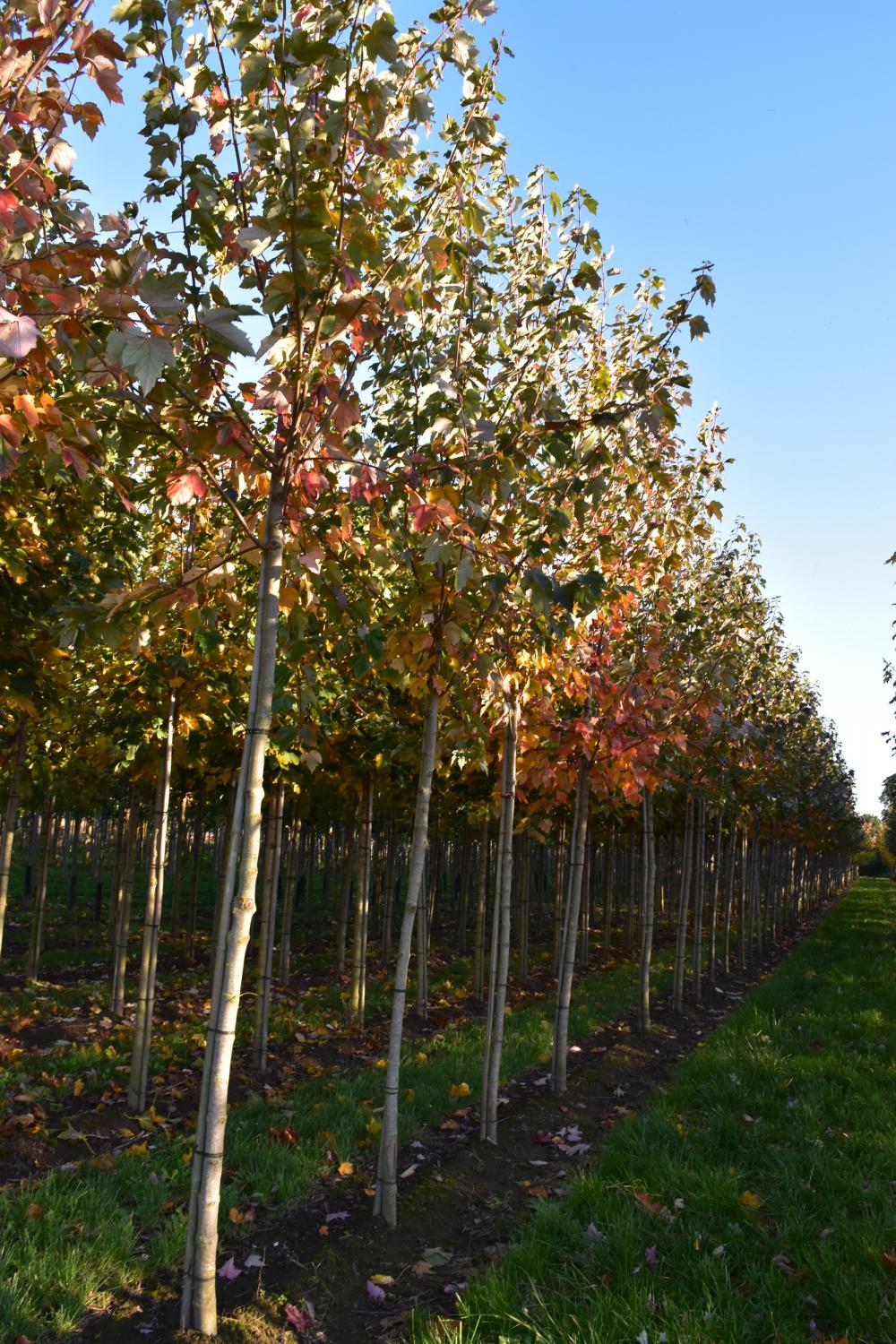 Acer rubrum ‘Red Sunset’ is een van de bekendste cultivars van de Rode esdoorn en wordt geroemd om zijn spectaculaire herfstkleur. Het blad verkleurt in oktober intens oranjerood tot dieprood, vaak iets later dan bij ‘Autumn Flame’. De boom groeit snel en vormt een dichte, ovale kroon met stevige takken. Dankzij zijn sierwaarde, regelmatige groei en vitaliteit is ‘Red Sunset’ een veel toegepaste laan- en parkboom.